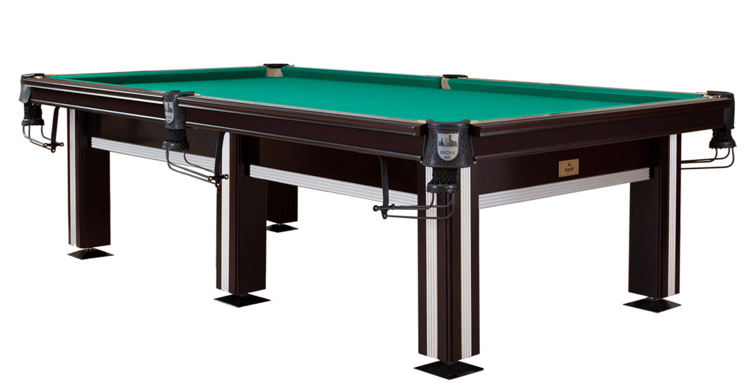 Бильярдный стол Бронкс-Премиум удачно впишется в интерьер, оформленный в стиле минимализм или хай-тек. Особый шарм ему придают серебристые декоративные вставки на царгах и опорах. Эта оригинальная модель порадует вас не только стильным внешним видом, но и отличной эргономикой. Увеличенный профиль обеспечит максимальный комфорт при выполнении ударов от борта.