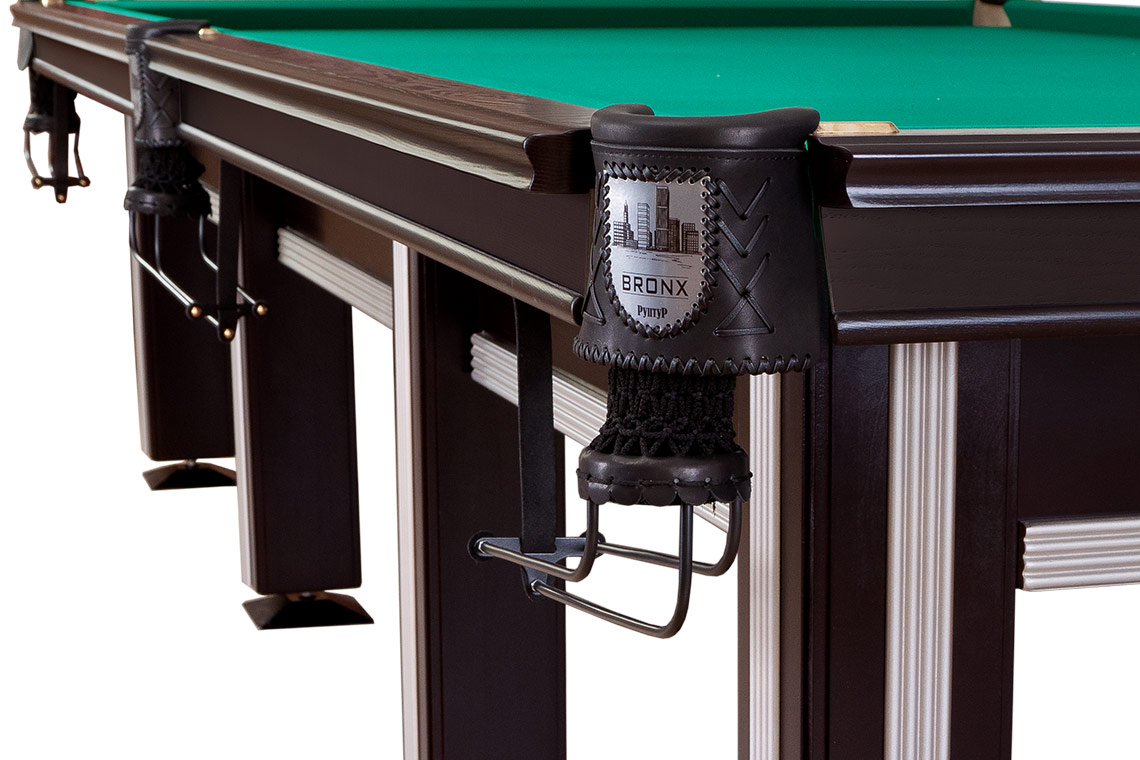 Бильярдный стол Бронкс-Премиум удачно впишется в интерьер, оформленный в стиле минимализм или хай-тек. Особый шарм ему придают серебристые декоративные вставки на царгах и опорах. Эта оригинальная модель порадует вас не только стильным внешним видом, но и отличной эргономикой. Увеличенный профиль обеспечит максимальный комфорт при выполнении ударов от борта.