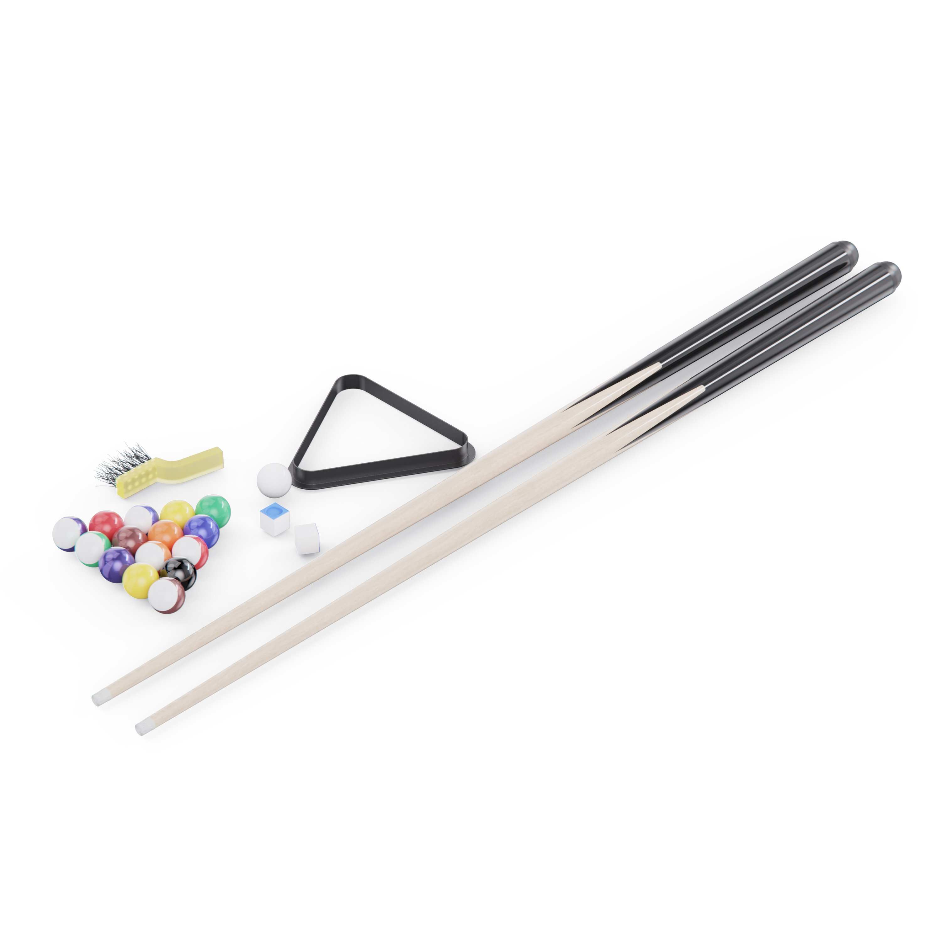 В набор уже входят: шары, мел, кий, треугольник для ровной расстановки и щётка для ухода за игровым полем. Длина кия – 106,7 см – подходит для игроков разного роста. Регулируемые ножки с компенсаторами неровностей пола позволяют выставить стол идеально горизонтально, обеспечивая устойчивость и безопасность. Высота ножек – 67 см, что удобно для игры стоя.