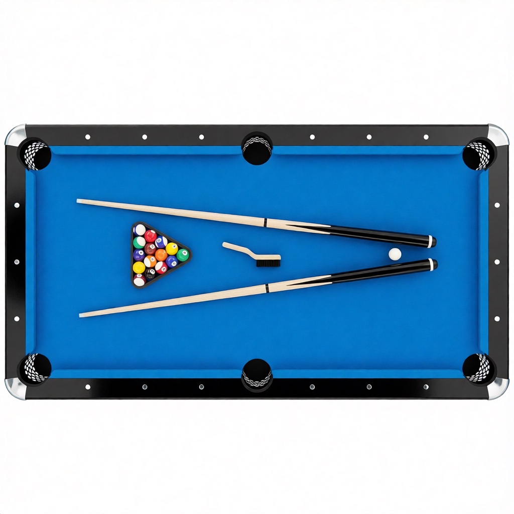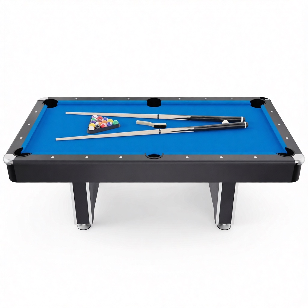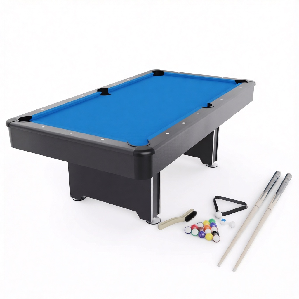 Стол укомплектован полным набором аксессуаров: шары диаметром 57 мм, два кия длиной 144,8 см, треугольник для ровной расстановки, щётка для ухода за сукном и два мелка. Профессиональная сборка не требуется – стол легко устанавливается в просторном помещении.