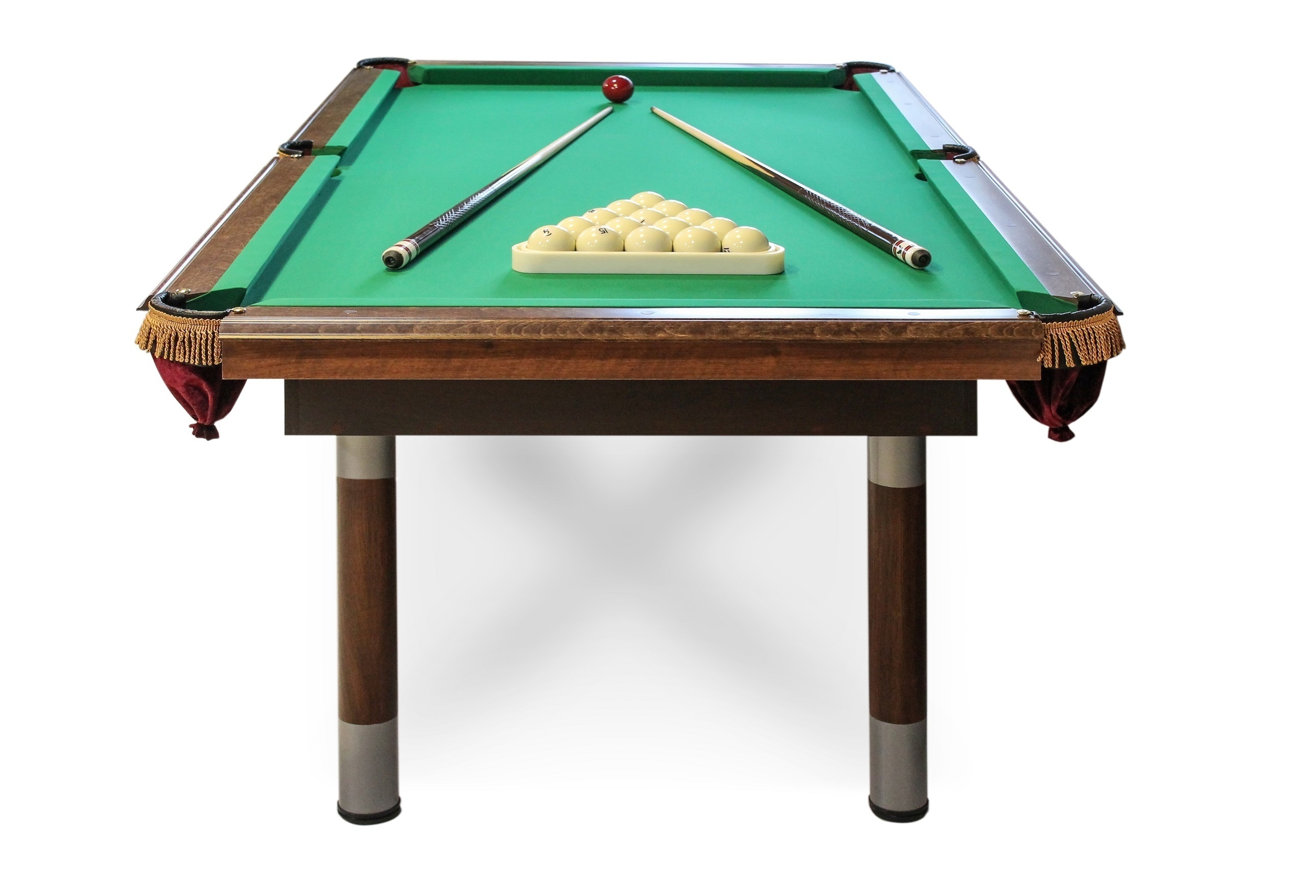 Модель оснащена бортами с вертикальным креплением, что позволяет при необходимости слегка расширить створ луз и сделать игру в пирамиду более комфортной. Благодаря использованию современных плитных материалов исключены такие проблемы, как усыхание и сезонная протяжка крепежа, которые свойственны деревянным конструкциям. Резьбовое и муфтовое соединение опор обеспечивает необходимую статичность стола. Опоры регулируются резьбовыми пятаками (до 3 см), что позволяет выровнять уровень и обеспечить полное прилегание к полу в бильярдной комнате.