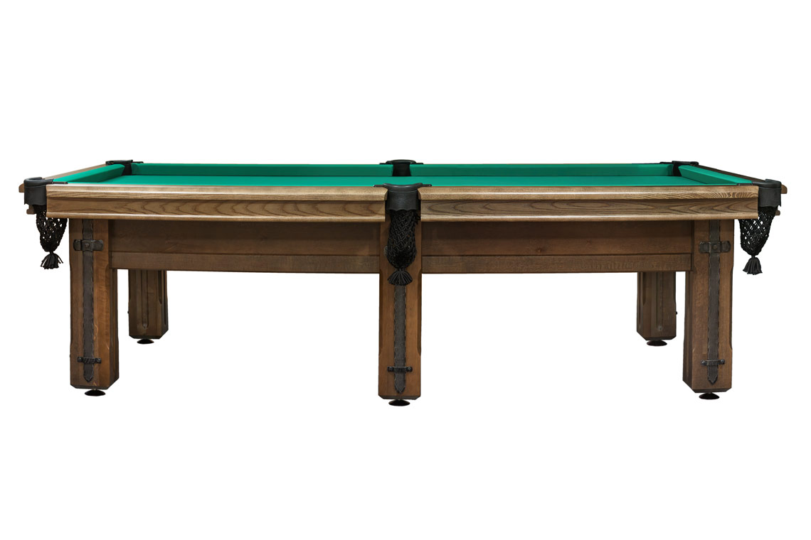 В дизайне бильярдного стола «Камелот» производители смогли воплотить величие и красоту традиционного римского стиля. Монументальные ножки, украшенные декором в виде средневековых мечей, а также выразительные элементы металлической ковки напоминают об эпохе королей и рыцарских турниров. А неповторимая, «теплая» фактура натурального дерева придает модели изысканный вид.