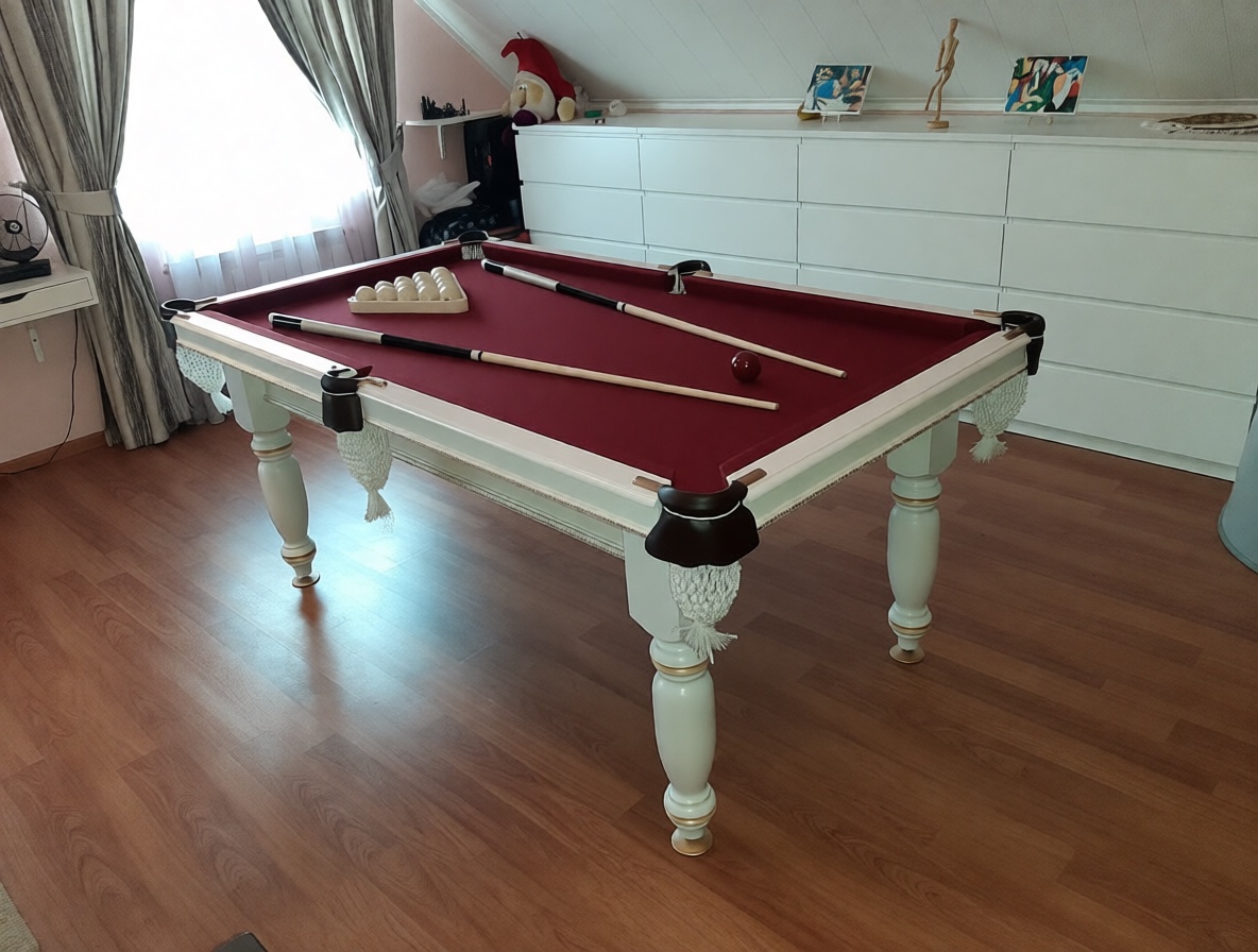 Бильярдный стол Бигль «Ладья» – это усовершенствованная версия популярной модели «Фурор». В новой версии борта стали массивнее и получили вертикальное крепление. Благодаря этому при желании можно самостоятельно немного расширить створ луз, что упрощает игру в русскую пирамиду.
