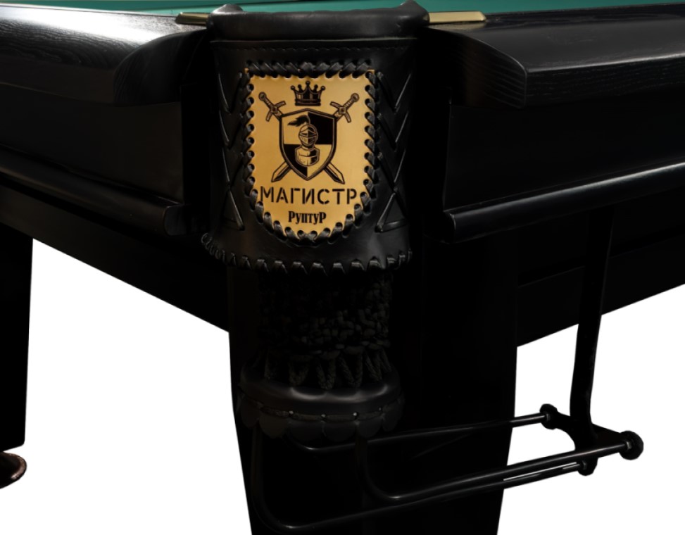 «Магистр» - бильярдный стол компании «РуптуР» выполнен в строгих прямых линиях, при этом сохраняет элегантность, соответствующую его званию. Материал изготовления бортов – ясень, что добавляет эстетического удовольствия от природной фактуры отборной древесины. Мощный каркас стола и элегантные ножки сделаны из ясеня или ольхи. Круглые металлические опоры создают ощущение лёгкости, несмотря на внушительный вес стола. По желанию заказчика, чтобы придать бильярду более внушительный вид, можно заменить опоры на квадратные.