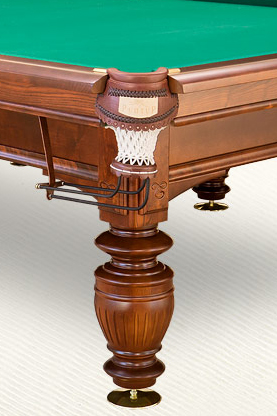При изготовлении бильярдного стола производители не использовали шпон и металлокаркасы – только отборные натуральные материалы. Борта и ноги могут быть выполнены из массива ясеня или ольхи (на выбор покупателя). В основе лежит природный сланец, который задает идеальную геометрию игровой поверхности – каждый шар катится строго по заданной траектории, гарантируя вам 100 % уверенность в победе. Встроенная система домкратов позволяет надежно и правильно установить бильярдный стол на любой горизонтальной поверхности. А увеличенные (по сравнению с «Магнатом») борта дают возможность с легкостью выполнять даже сложнейшие бортовые удары.