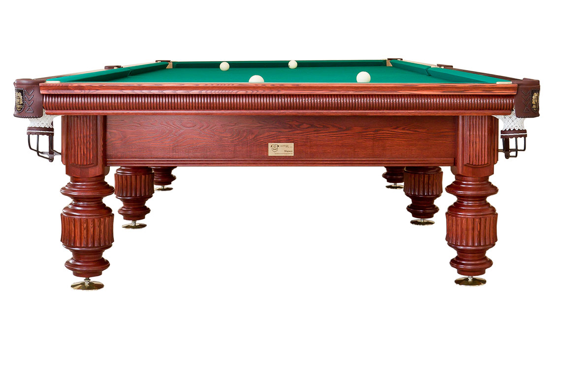 «Маркиз» изготовлен по стандартам, применяемым к бильярдным столам спортивной серии. Его безупречное качество подтверждается сертификатами Международного и Европейского комитетов по русской пирамиде. А модель размером 10 футов вы сможете использовать еще и для игры в снукер.