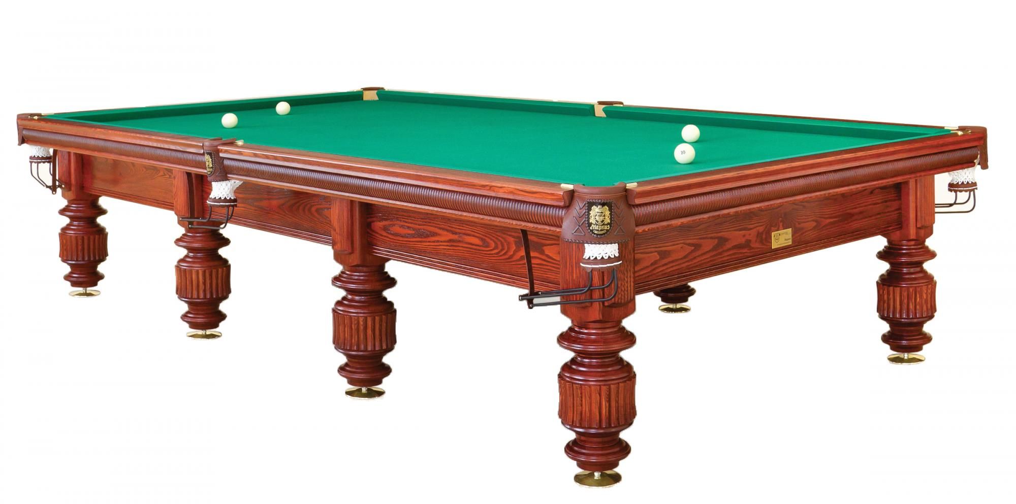 «Маркиз» изготовлен по стандартам, применяемым к бильярдным столам спортивной серии. Его безупречное качество подтверждается сертификатами Международного и Европейского комитетов по русской пирамиде. А модель размером 12 футов вы сможете использовать еще и для игры в снукер.