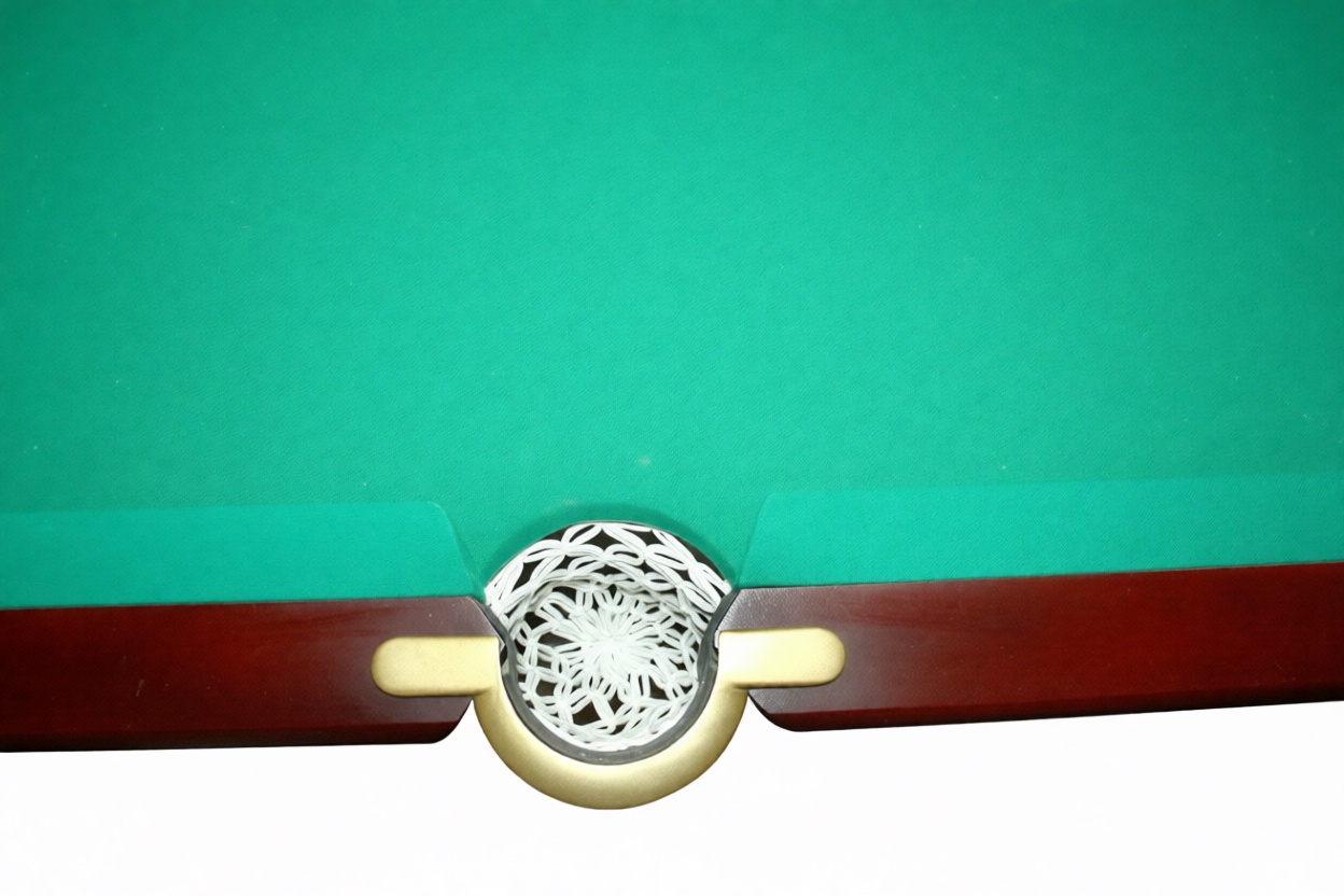 Стол «Олимп Хоум» может оснащаться латунными лузами с сеткой или с механизмом выката шара.