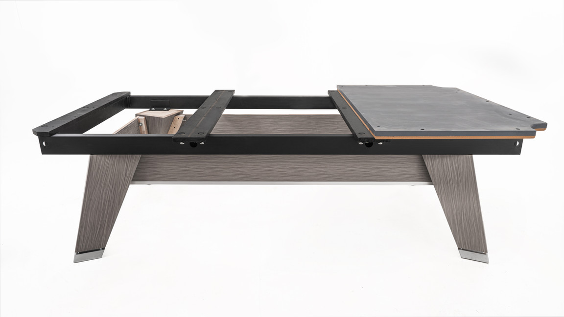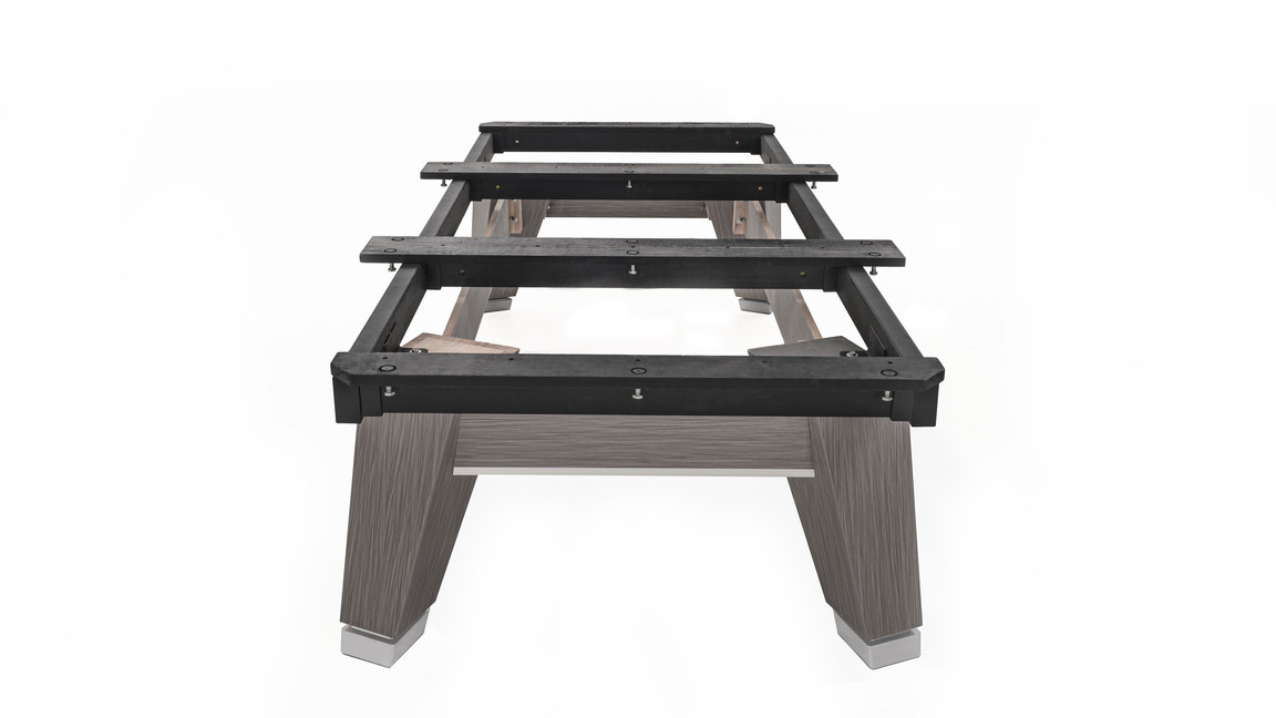 Стол оснащен опорной балкой из стали и дерева. Фирменное выравнивание плиты имеет 18 микрорегулируемых точек для идеально ровной игровой поверхности. Удобная и точная система выравнивания плиты обеспечивает превосходную устойчивость.
