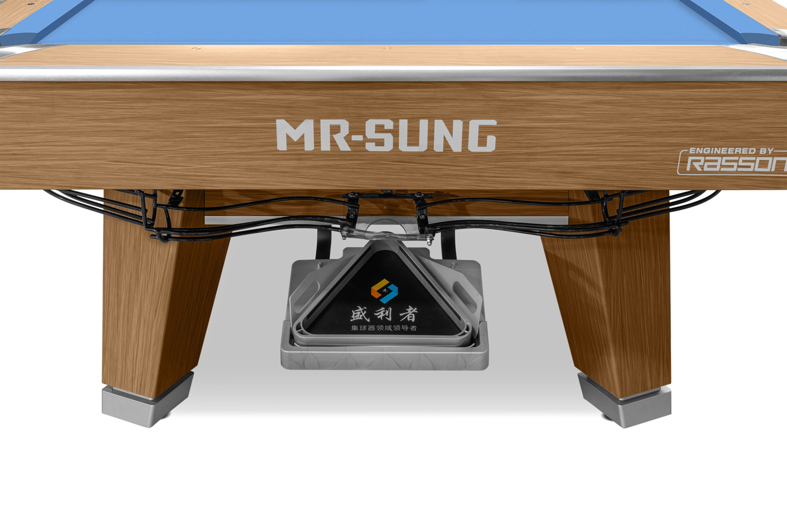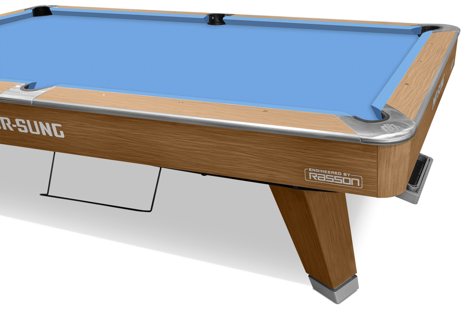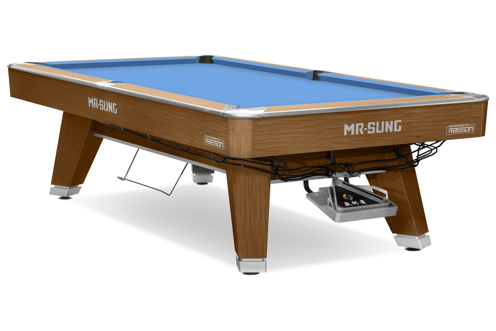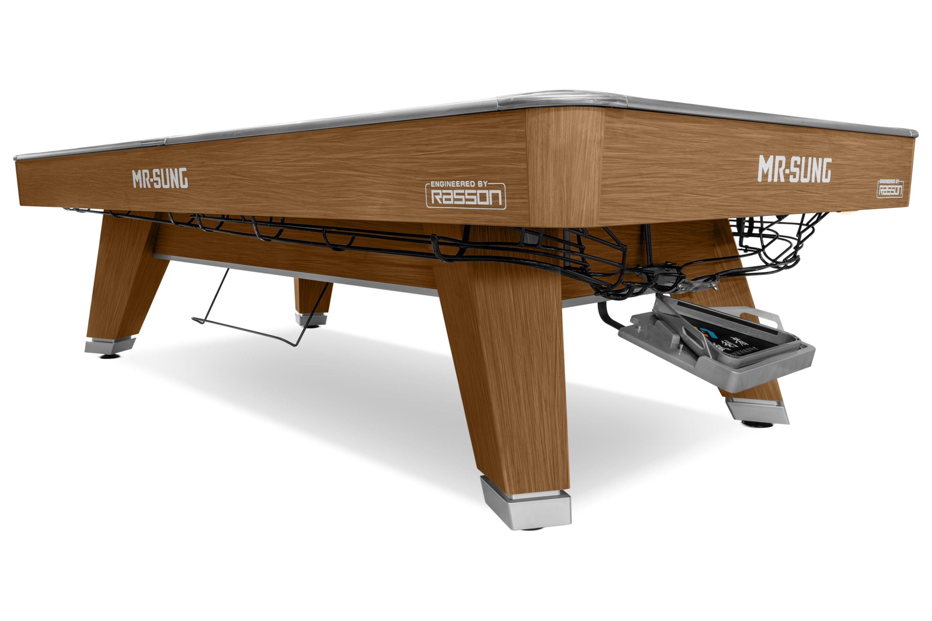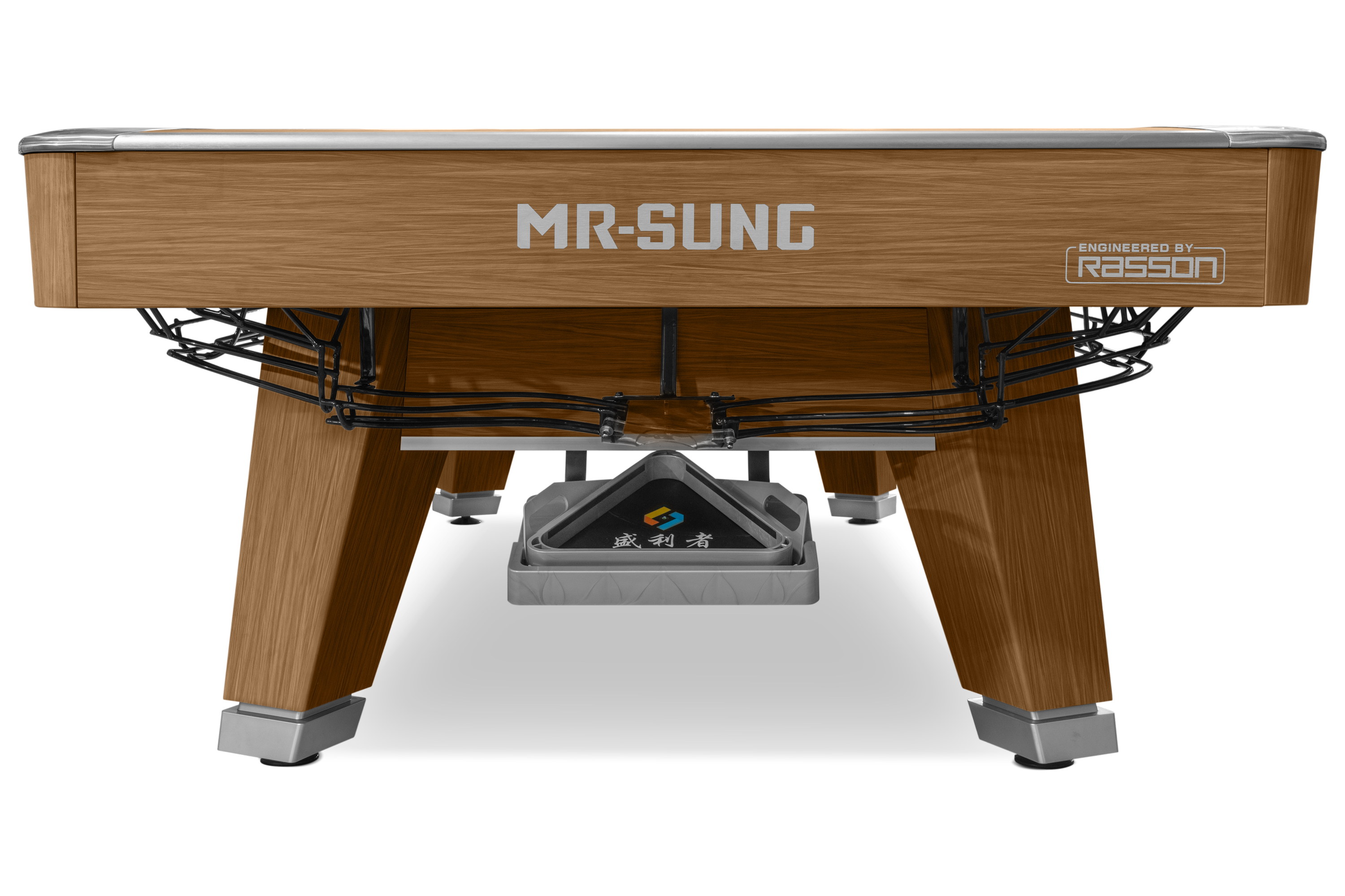 Стол оснащен опорной балкой из стали и дерева. Фирменное выравнивание плиты имеет 18 микрорегулируемых точек для идеально ровной игровой поверхности. Удобная и точная система выравнивания плиты обеспечивает превосходную устойчивость.