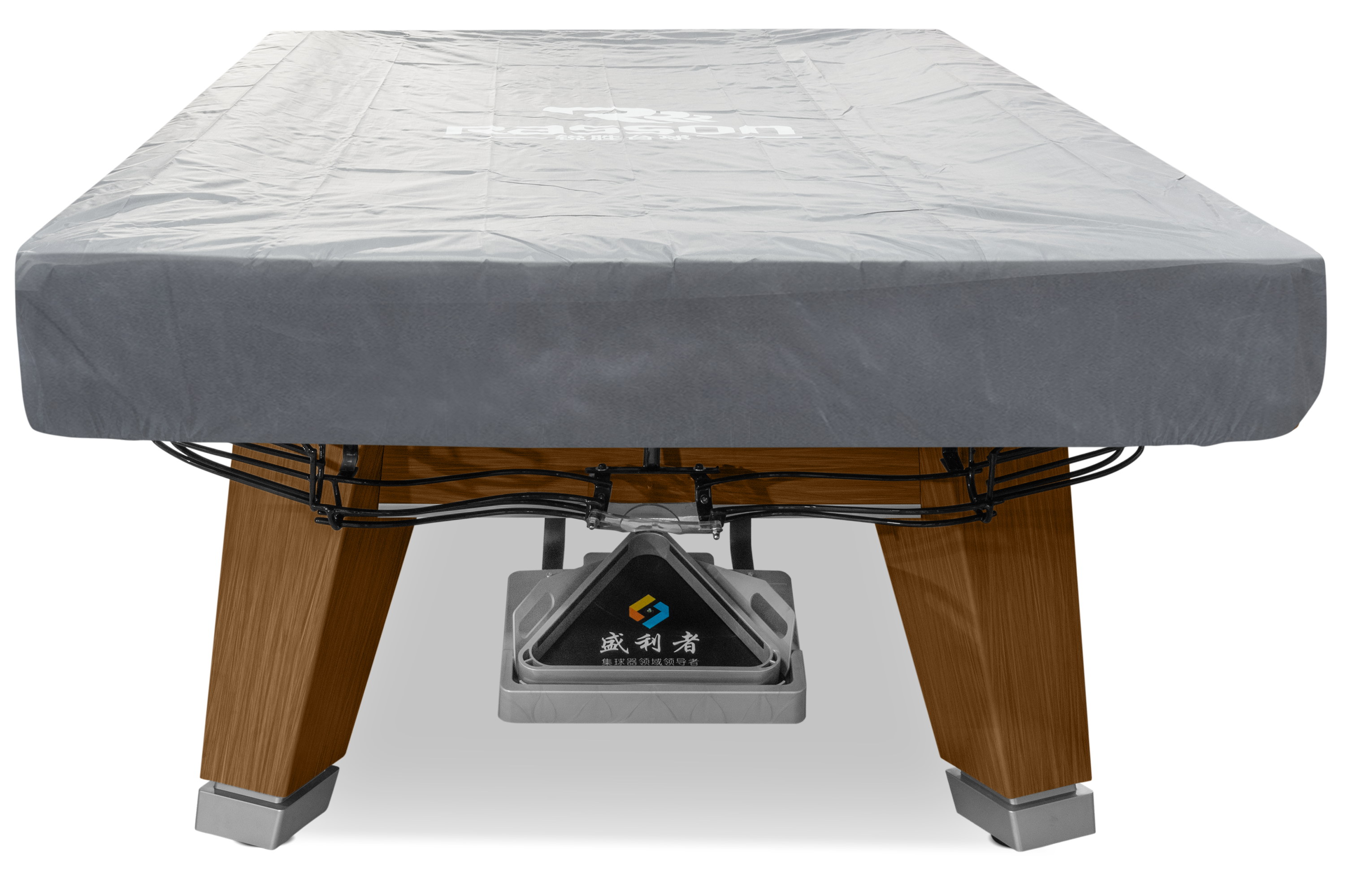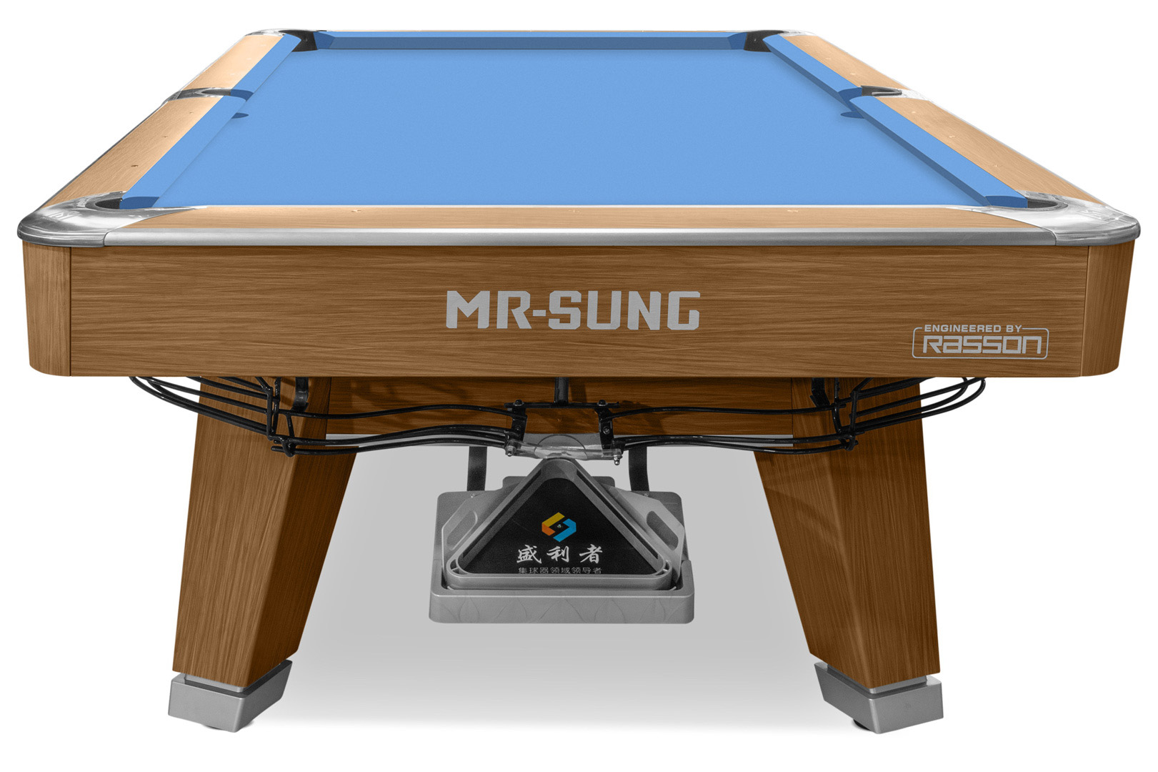 Стол оборудован системой выкатов - все забитые шары скатываются в треугольник на специальном поддоне, и сразу готовы для следующей игры после окончания партии.