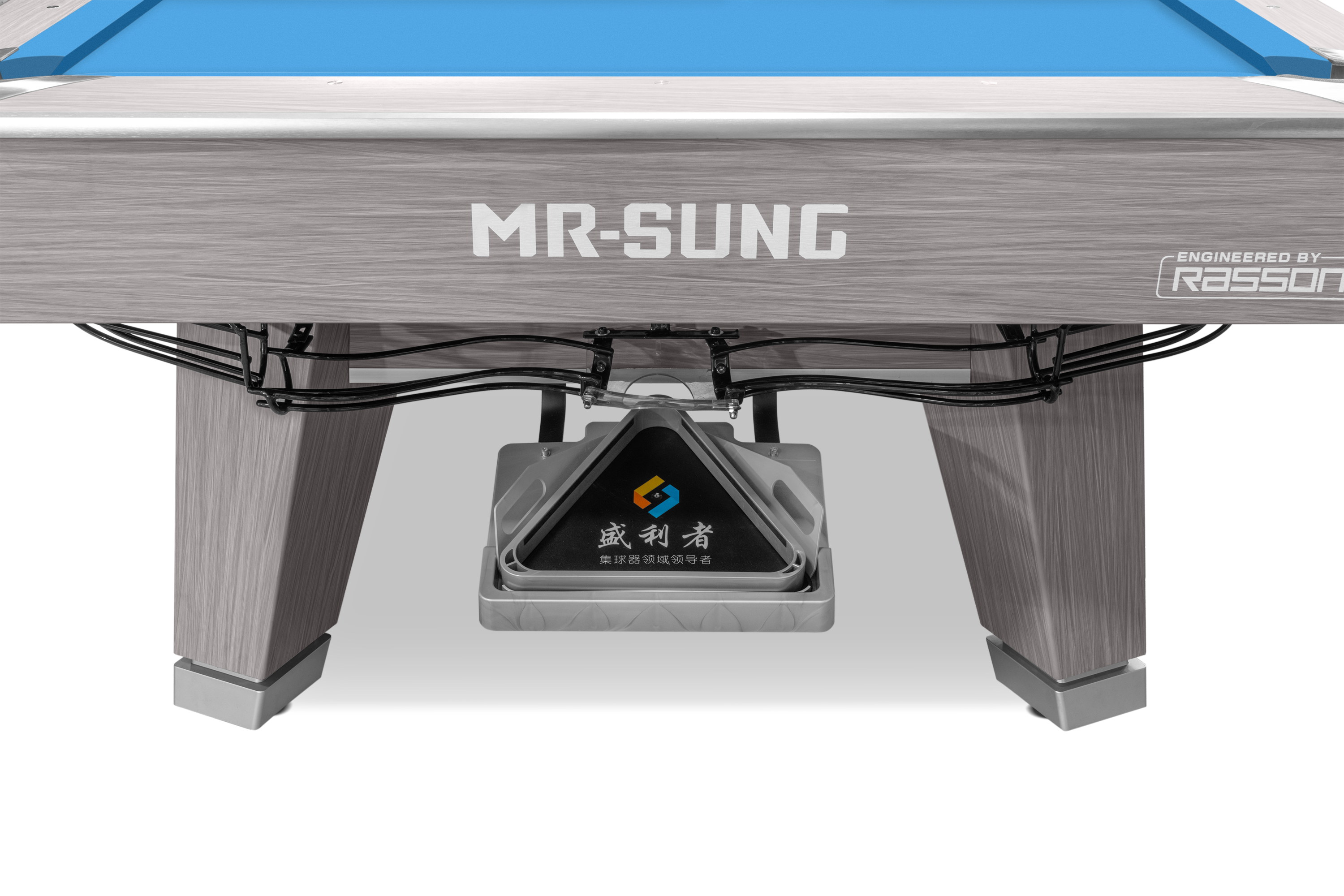 Стол оборудован системой выкатов - все забитые шары скатываются в треугольник на специальном поддоне, и сразу готовы для следующей игры после окончания партии.