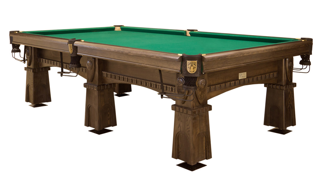 Крепкий, «основательный» и надежный бильярдный стол Русич гарантированно приведет в восторг ваших гостей. Свое название он получил не случайно. Обратите внимание на необычную форму ножек – конверты, выполненные в виде щитов русских витязей, задают оригинальный стиль всему оформлению.