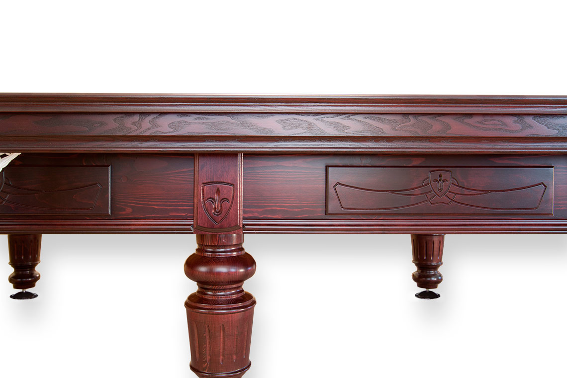 Шевалье – одна из самых популярных любительских моделей бильярдных столов от фабрики «РуптуР». Он станет изысканным украшением интерьера в классическом стиле. Подчеркнуто строгие линии лафета создают интересный контраст с изящной резьбой и оригинальными фигурными ножками.