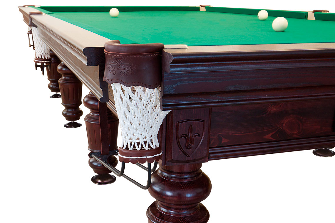 Основа игрового поля в сочетании с высокопрочным эластичным сукном обеспечивают превосходный раскат, а за качество отскока отвечают профессиональные амортизаторы. Применение облегченных сланцевых плит (толщиной 25 мм) делает возможной установку бильярдного стола на верхнем этаже – изделие не создает излишней нагрузки на перекрытия.