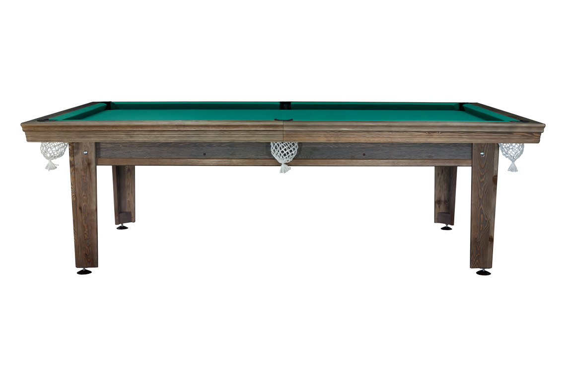 Ножки и борта изготовлены из массива дерева, поэтому не стоит беспокоиться – стол очень устойчив и надежен. Играть на нем будет одно удовольствие. Этому способствует и особая конструкция скрытых луз – отсутствие лузных скоб на поверхности бортов позволяет удобно устанавливать кий для удара, как бы близко к борту ни находился биток.