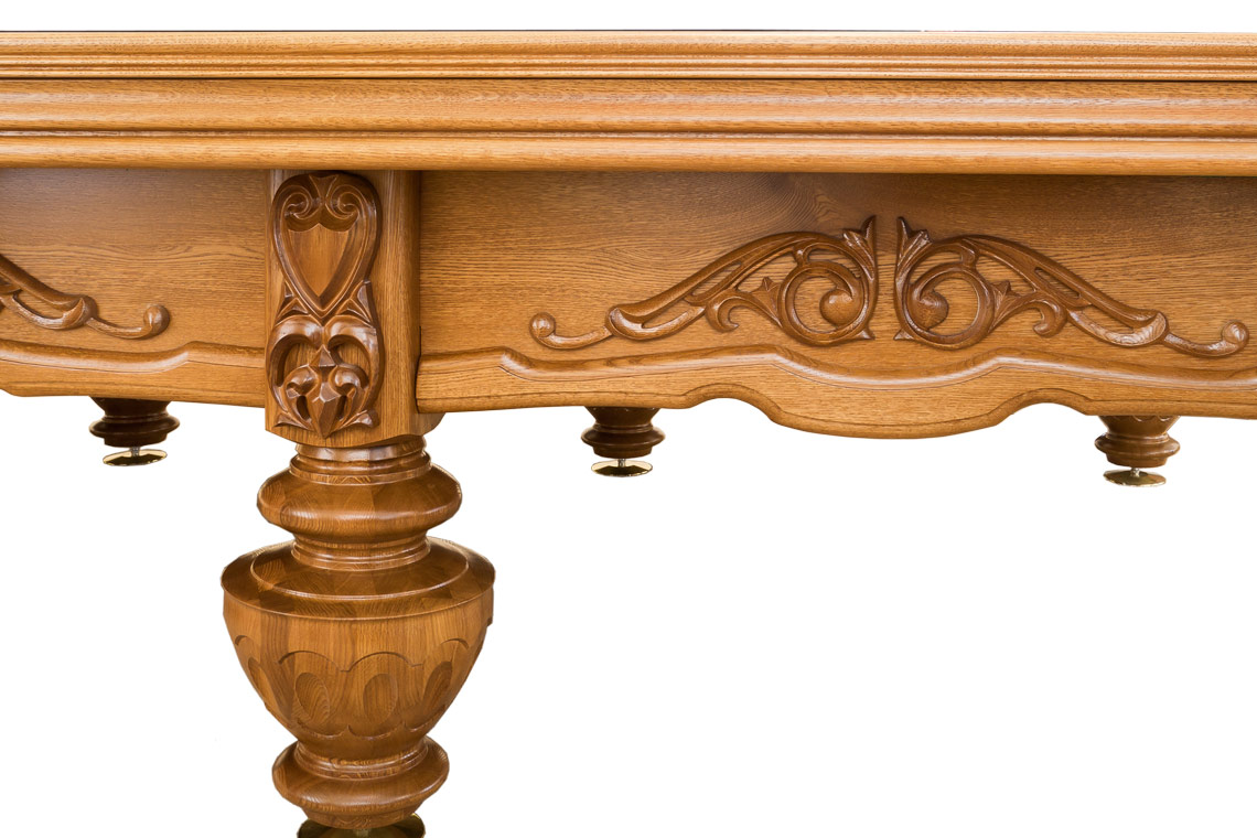 Бильярдный стол «Цезарь» - поистине «королевское» украшение. Модель из коллекционной серии «РуптуР», выполненная в роскошном античном стиле, займет достойное место даже в самом изысканном интерьере. Изящные ножки, напоминающие капители древнегреческих колонн, выразительная фактурная поверхность, искусная декоративная отделка – все это делает бильярдный стол настоящим произведением искусства.