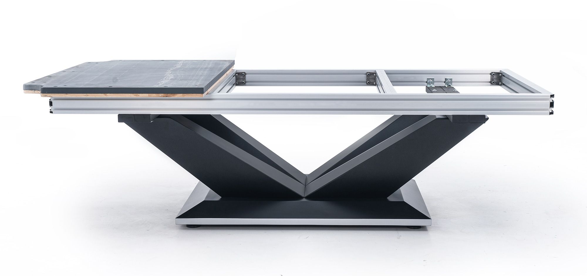 • Особая V-образная форма ножек, которая не только придает бильярдному столу оригинальный внешний вид, но и дает возможность наблюдать за игрой из любой точки зала.