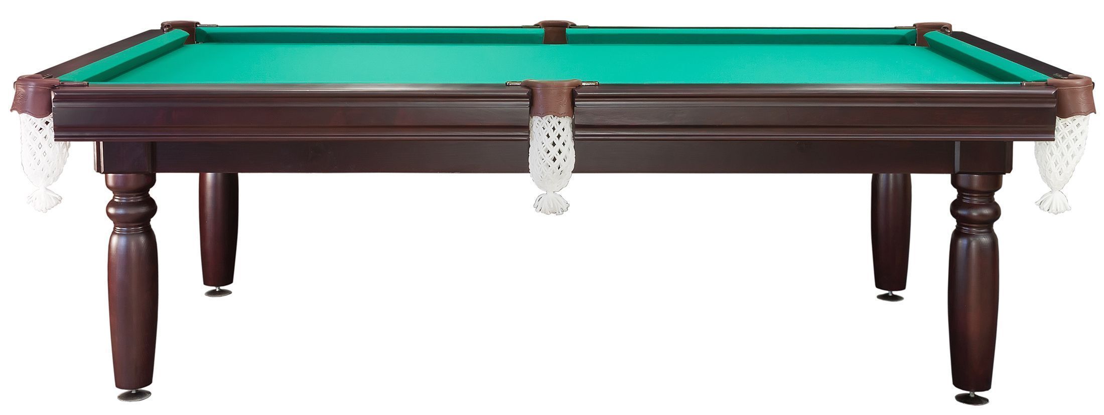Бильярдный стол для пула и пирамиды изготовлен из массива сосны. Перед поступлением в производство древесина проходит несколько этапов обработки, что позволяет добиться повышенной прочности материала. Применение ЛДСП в качестве игрового поля значительно снижает стоимость оборудования и облегчает процесс монтажа. Вы легко сможете выполнить установку бильярдного стола даже без помощи специалистов. Просто прикрутите ножки и выровняйте игровое поле с помощью регулируемых опор. Всего несколько минут – и стол готов к использованию.