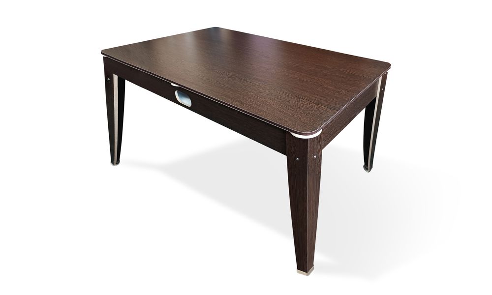 Для больших бильярдных столов крышка состоит из 2–3 лёгких регулируемых секций, соединяющихся «в замок». Их можно быстро собрать в единое поле или компактно убрать перед игрой. Такая столешница не только украсит интерьер бильярдной, но и сделает его более функциональным. Оригинальный «фокус» — превращение красивого письменного или обеденного стола обратно в бильярдный — удивит ваших гостей.